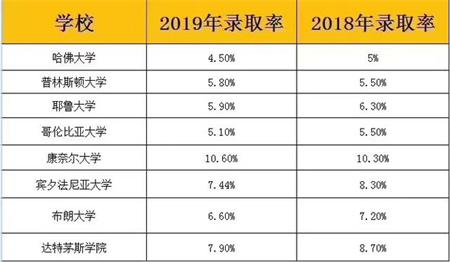 根据《2018年度我国出国留学人员情况统计》显示,2018年度我国出国留学人员总数为66.21万人。其中,国家公派3.02万人,单位公派3.56万人,自费留学59.63万人。可这么多的中国留学生又有多少能升入世界呢?下面的表格显示了中国学生在美国八所常春藤的录取率。