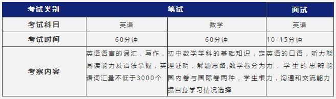 上海阿德科特学校入学考试分为笔试(英语,数学)、面试(英语)两部分。