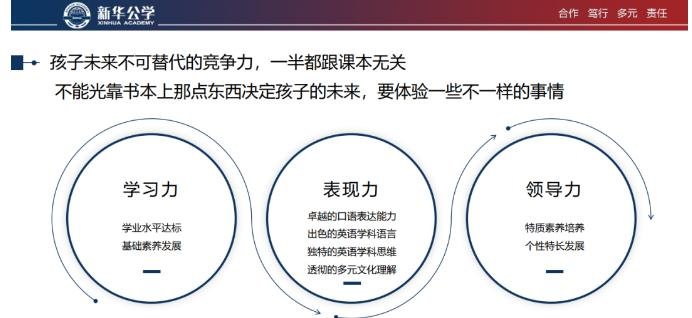 秦总校长就“新时代教育”做了独到的教育见解,从新时代教育的变化与挑战出发,引出新时代下我们的教育使命,从而引出国际化教育的必然性与教育国际化的解读:我们要做关注“人”的教育,重视学生本体,满足学生多层次需求,从而培养学生多元化素质发展。
