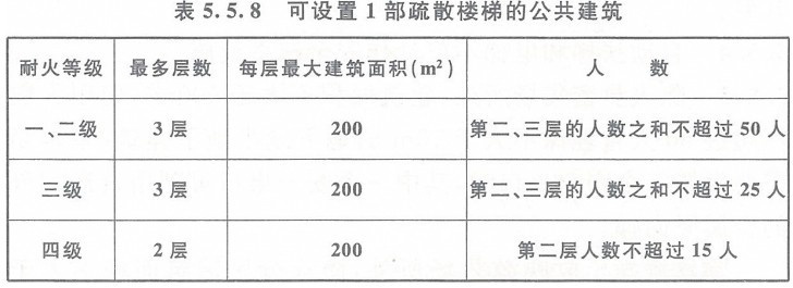 2 、除医疗建筑,老年人建筑,托儿所、幼儿园的儿童用房,儿童游乐厅等儿童活动场所和歌舞娱乐放映游艺场所等外,符合表5.5.8规定的公共建筑。 注意:教材上的“除歌舞娱乐放映游艺场所外的公共建筑,当符合下列条件之一时,可设置1个安全出口”,规范上没有这个前提。