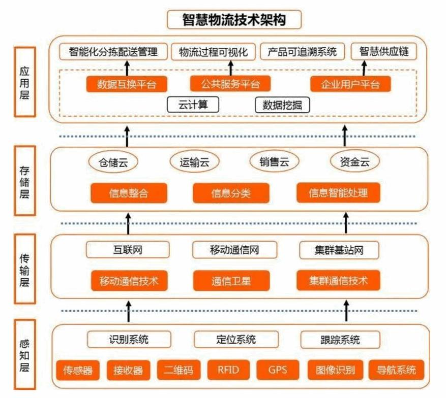 1.本质功能未变: 物流价值链上的六项基本环节(运输、仓储、包装、装卸搬运、流通加工、配送、信息服务)实现系统感知和数据采集的 现代综合物流智能型系统。