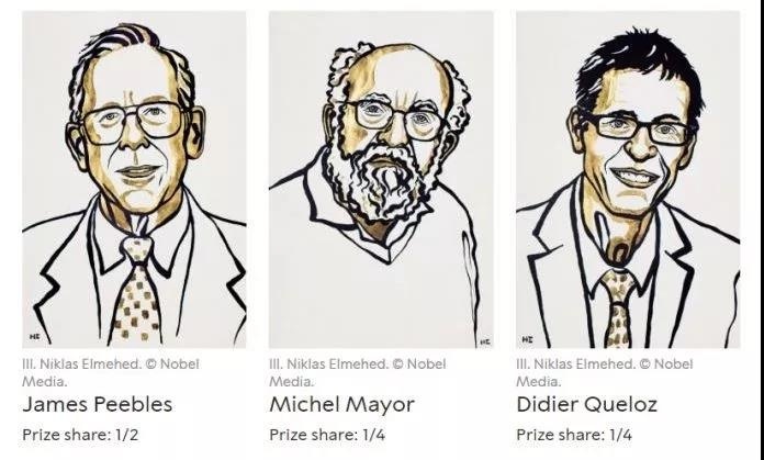 ●获奖者:James Peebles(普林斯顿大学理学博士)、Michel Mayor(日内瓦大学天文学博士)、Didier Queloz(日内瓦大学天体物理学博士) ●获奖成果:发现太阳系外行星,绕太阳系恒星运行。