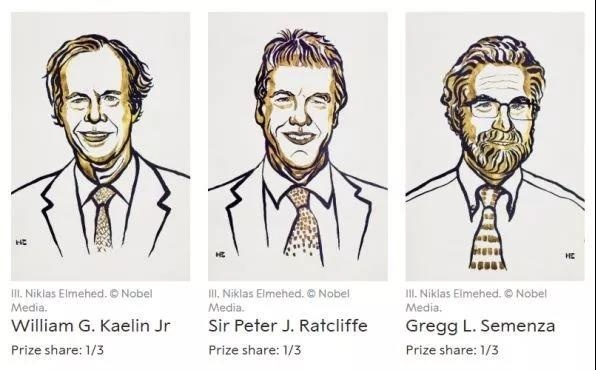 ●获奖者:William G.Kealin Jr(杜克大学医学博士)、Sir Peter J.Ratcliffe(剑桥大学医学博士)、Gregg L.Semenza(约翰霍普金斯大学博士后研究员主任) ●获奖成果:人体细胞的变化如何感知和适应氧气供应