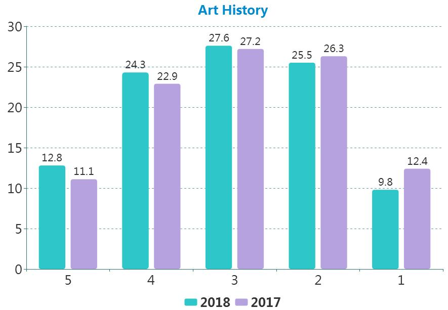 艺术史今年的分数普遍上涨,得低分的人数较去年减少,成绩主要集中在3分,占27.6%。