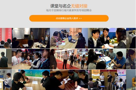 银河教育与上百家企业合作,引入全真企业项目,使用独有的OPR有偿项目开发教学阶段,不但可以学习到真实的企业工作项目,还可以拿到一定量的报酬,让学员学习赚钱两不误。